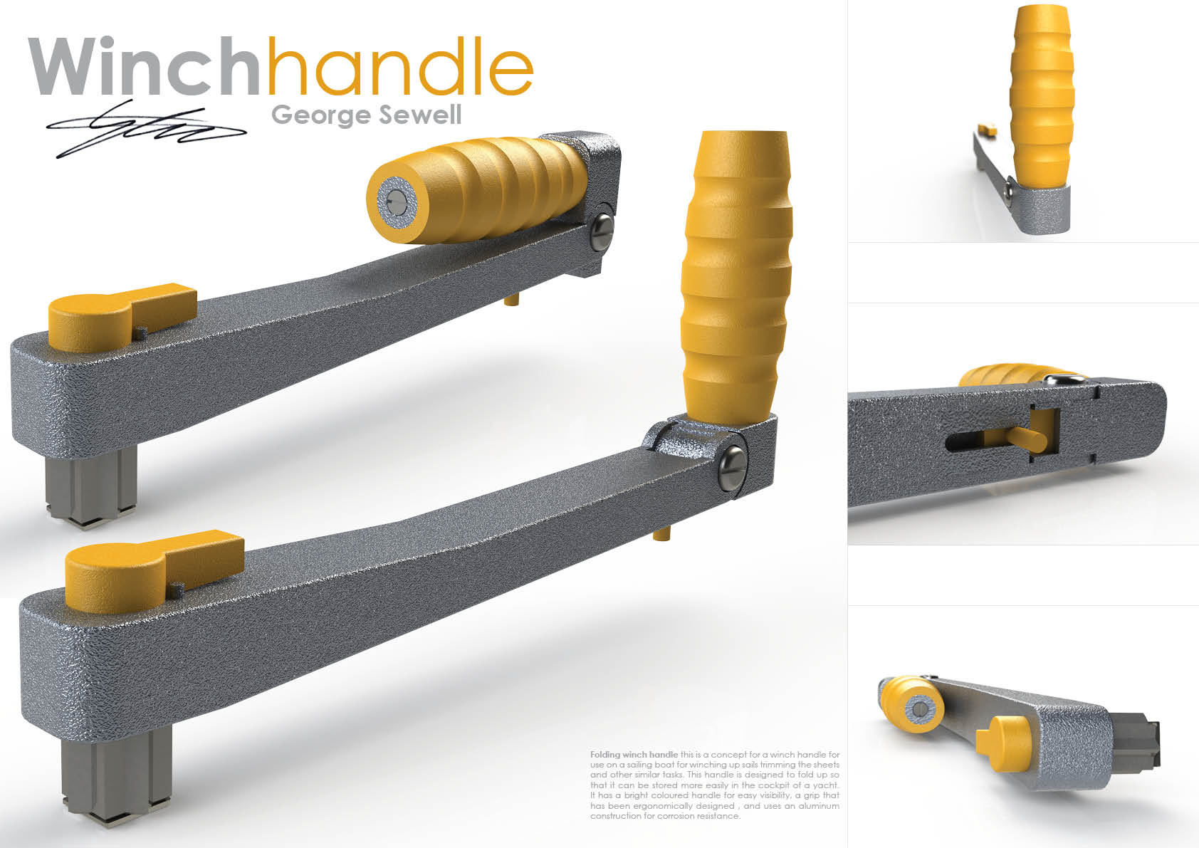 Folding Winch Handle concept sketch of winch handle folding winch handle designed to be easy to store in the cockpit or in a locker but rugged enough to use at sea. Share this: Click to share on Facebook (Opens in new window) Facebook Click to share on X (Opens in new window) X Like Loading... Related